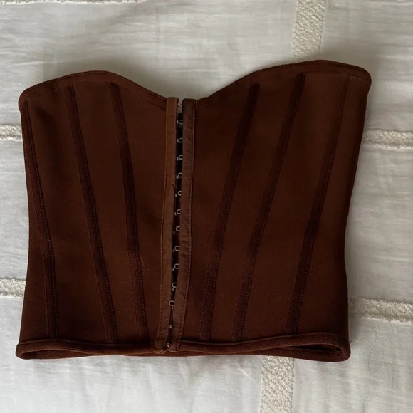 Chic rust strapless top. Sleek design with smooth finish.