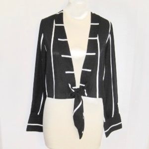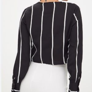PrettyLittleThing striped cropped blouse. Color: Black/White. SIZE: 4 Armpit to armpit measures 17.75") . Features: