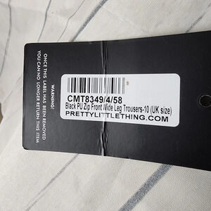 PrettyLittleThing Vegan Faux Leather Zip Front Wide Leg Trouser Black Size 6 New