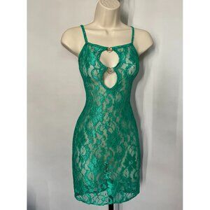 Prettylittlething Emerald Green Lace Keyhole Cut Out Bodycon Mini Dress - 8