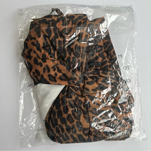 Prettylittlething Tall Brown Leopard Ruched Under Bust Midi Dress. Size: 8(US).