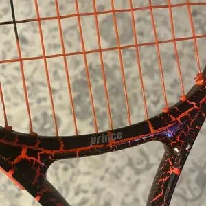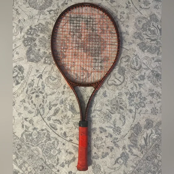 Vibrant red tennis racket with a sleek design. Perfect for tennis enthusiasts. Great shape