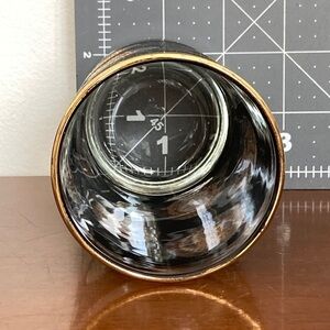 Vintage Libbey Glass Co. Barware glasses black with gold seal coins emblem design. The black is a textured finish. Set of 7. These are in good vintage shape. Please take a close look at the pictures as they are part of the description. There are no chips on the glasses but there is some missing gold trim around the top and the 1st band around the top. Feel free to ask for more pictures if you’d like.