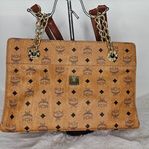 Price is FIRM⚠️ MCM Cognac Visetos Coated Canvas and Leather Chain Tote