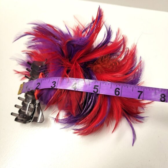 Pride Parade Flamboyant Fascinator Hair Claw Clip with Purple and Red Feathers