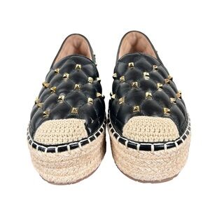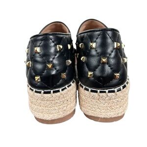 Prima Donna black gold-studded platform wedge sneaker loafer, 36, Slip Ons