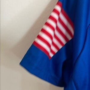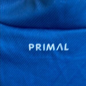 Primal blue cycling jersey with flag details. Features a zip front and bold graphics.