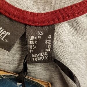 Primark Harry Potter women's size xs or 0 gray Quidditch shirt design maroon and metallic gold, New