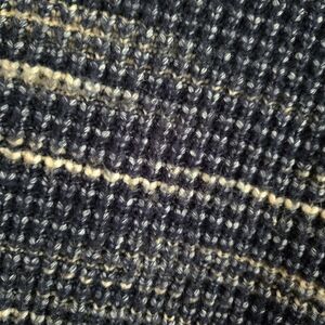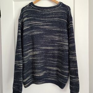 Cozy navy and cream knit sweater. Perfect for cool weather. (bin 3)