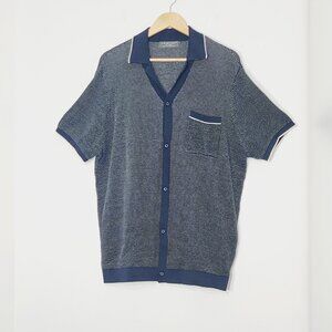 Primark Vintage Men's Knit Blue White Cotton Short Sleeve Button Polo Top Sz 2X