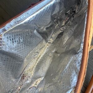 Brand new stylish cork insulated wine purse! Keeps your wine cold, and has a small zip pocket