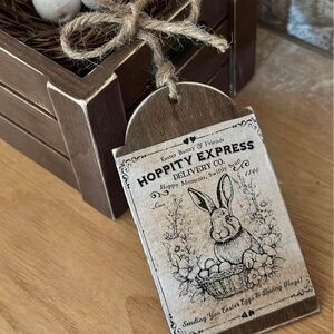 Cute handmade spring decor Bunny carrots in crate Measuring 6.5” x 4”