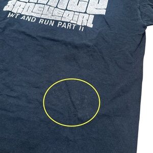 Used in very good condition. Some marks and spots from wear. Some small bleach spots on the left sleeve. Cracking on the graphics.