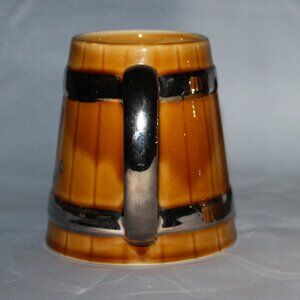 Featuring the flag of Prince Edward Island, this stein features a wide base, two chrome hoops and chrome handle. Very good condition without any chips, cracks, or crazing. Capacity is 16 ounces or 500 ml. Height is 4 3/4", width to handle is 5 1/2" and diameter of opening is 3".