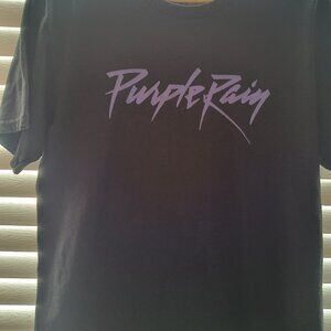 Color: Black with vibrant purple "Purple Rain" spell-out graphic