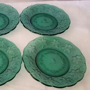 Princess House Fantasia Plates- Set Of 4- Emerald Green-Salad/Dessert Plates 90s
