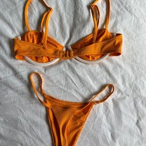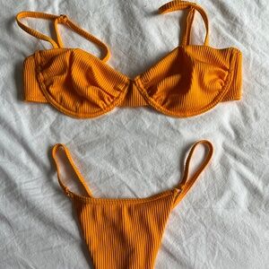 Princess Polly orange ribbed bikini. High cut thong bottoms and a bralette style top- both size 4. Worn only once to tan