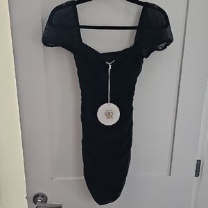 Princess Polly Black Bodycon Mini Dress with Puff Cap Sleeves