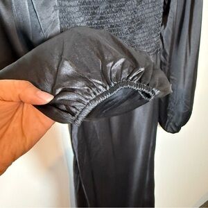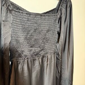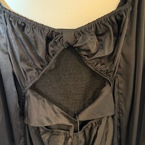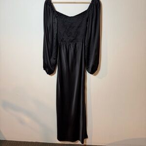 Elegant black maxi dress. Features long sleeves and cut-out detail. Perfect for evening wear.