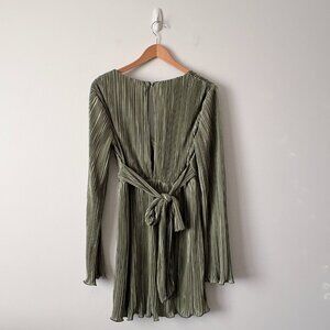 Princess Polly Cindie Wrap Pleated Mini Dress Sage Green Size 8