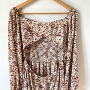 Chic mini dress with floral design- to me personally it looks more like a leopard print than floral, but floral is how it was listed when I purchased it. Features a stylish cut-out front. Long sleeves with gathered cuffs. Perfect for any occasion.