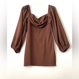 Princess Polly Lillie Long Sleeve Mini Dress Brown NWT