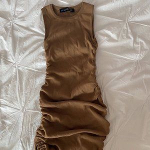 LIKE NEW (only worn once). Princess Polly (Lioness) - Military Minds Mini Dress in the colour Camel. Size XXS with adjustable side ties.