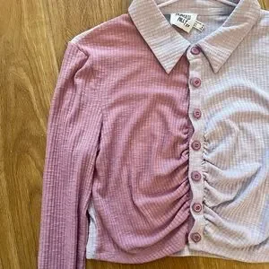Purple and pink ruched button-up top from Princess Polly. No longer sold!