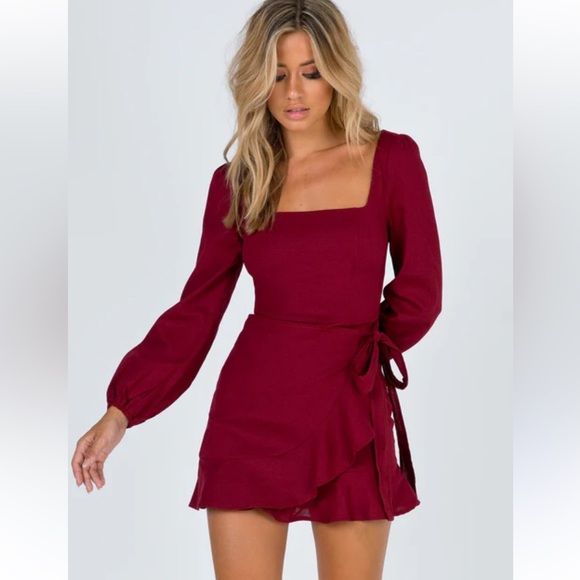 Princess Polly | The Villa Burgundy Square neck wrap dress - long sleeve - US 6