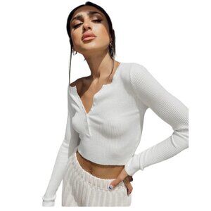 Long sleeve slim fitting cropped rib knit top by Princess Polly.