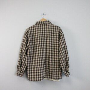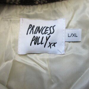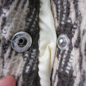 Princess Polly Women Plaid Jacket L Wool Blend Ivory Brown Button Cozy Warm 956