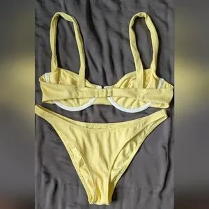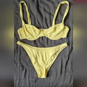 Princess Polly Yellow Ribbed Bikini Set