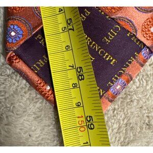 Principe Mens Silk Tie Orange & Blue Circular Pattern Made In Italy