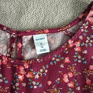 Printed High-Neck Sleeveless Blouse for Women Color: Burgundy Floral Size: XL