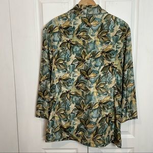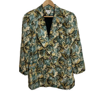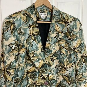 Gorgeous silk in a watercour-esque floral. Fully lined with shoulder padding. Has front welt pockets that are still stitched shut. In great shape and marked as size medium. Please check msmts for best fit: