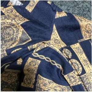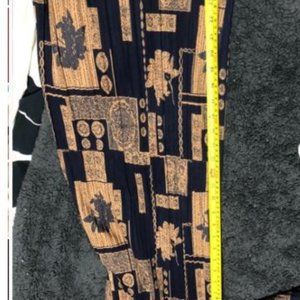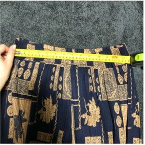 Navy and taupe print. Raw hem. Excellent used condition, worn once. No rips, stains or pulls on this item. See measurements to know how this item will fit you. Such a great staple to add personality to your wardrobe. Comfy elasticated waistband. So great for summer and any vacation.