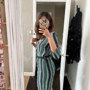 Printed Wrap Dress in Dark Green (S)