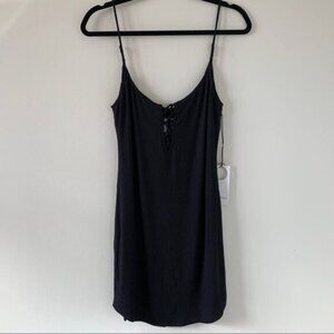 Privacy Please Revolve Women's Mini Dress Lace Up Ribbed knit Black Size Medium