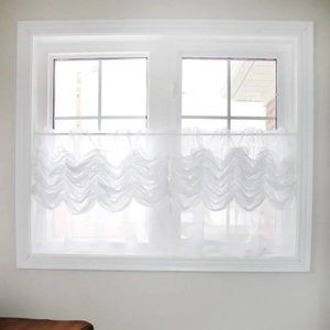 Privacy white sheer balloon valance has double layer design.