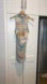 Privy Privately Privileged Ruched sheer overlay dress with a swirling pattern of light blue, tan, and white.
