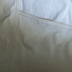 Pro Mod off white jean jacket with unique browny buttons with one white side on each button. In excellent condition. The inside tag has faded so I don’t know the material or the size. I would say small to medium.