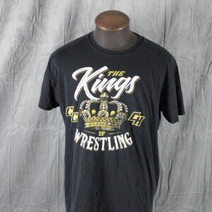 Up for sale is a pro-wreslting shirt. It has a black base colour with the Kings of Wrestling logo screened on the front. What a great shirt do not miss out on it.