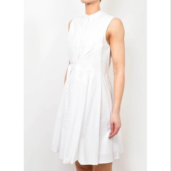 Proenza Schouler Cotton Pleated Sleeveless Dress, White, Womens Size Large