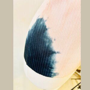 Hand dip dyed, color of dark dye is a very dark navy blue/black.