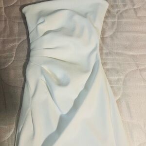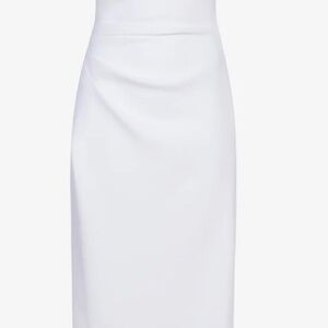 Proenza Schouler Shira Strapless White Dress in Matte Double Crepe with Slit and to Mid-Length Silhouette with Gently Gathered Bodice.