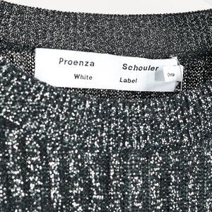 Crafted with precision, this Proenza Schouler White Label sweater offers a flattering slim fit. Its long sleeve design and round collar add a touch of classic elegance, while the split hem provides a modern twist. Made with a black and silver lurex rib-knit fabric, this sweater is both stylish and comfortable.