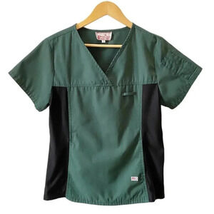 Professional Choice Scrubs Body Flex Top Foldover Pants Green Black Small
