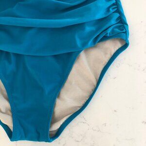 Profile Lined One Piece Swim Suit w Ruched Sides Turquoise Blue No Size Tags