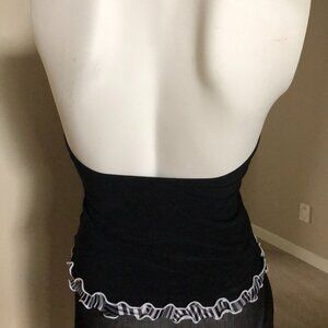 Profile Tankini Halter Top in Black with Frill Trim in Grey + White - No Sizing or Fabric Tag on Garment