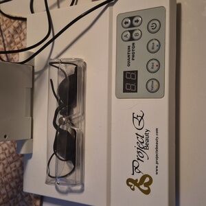 Enhance your skincare routine with Project E's LED therapy device. Features multiple LED panels for effective treatment.